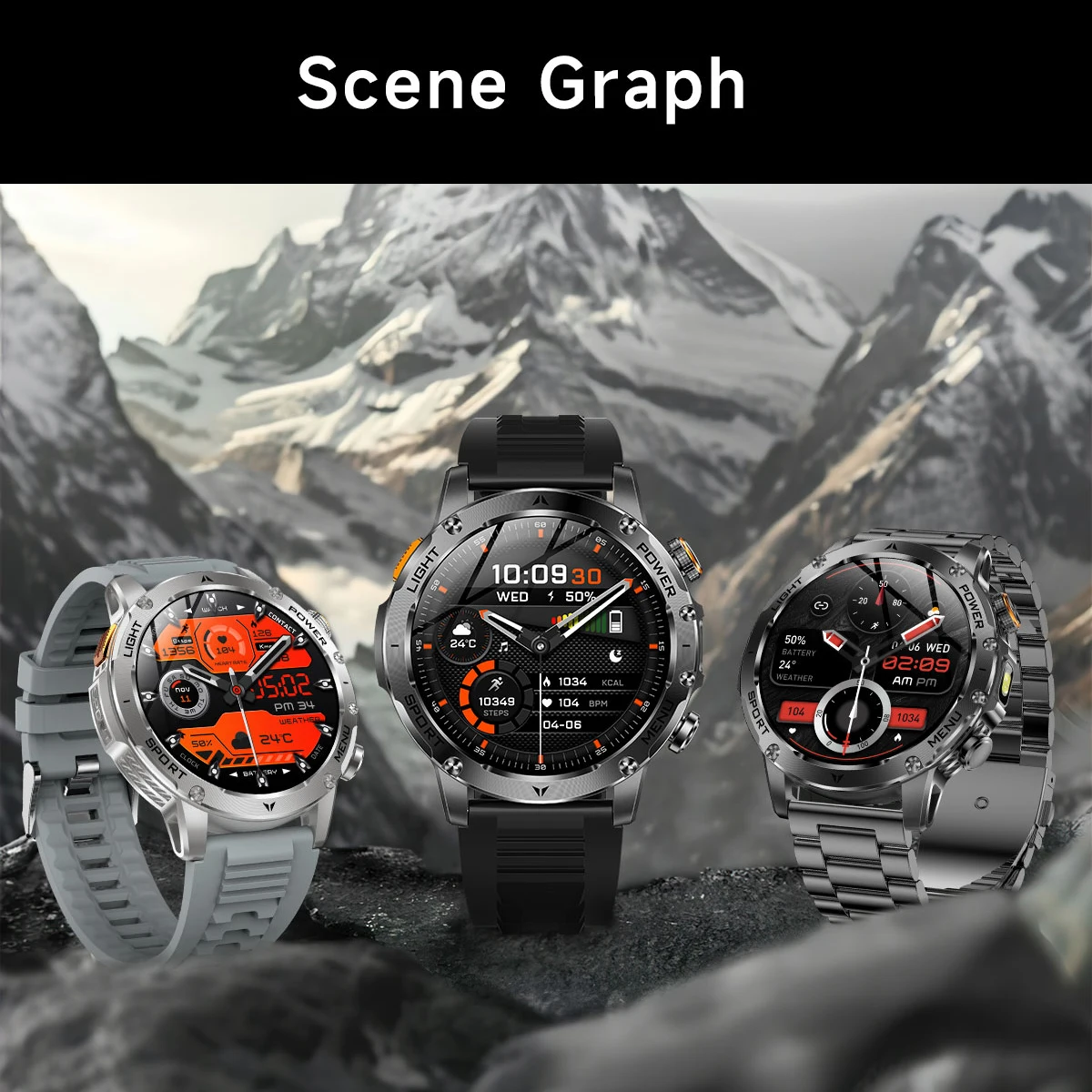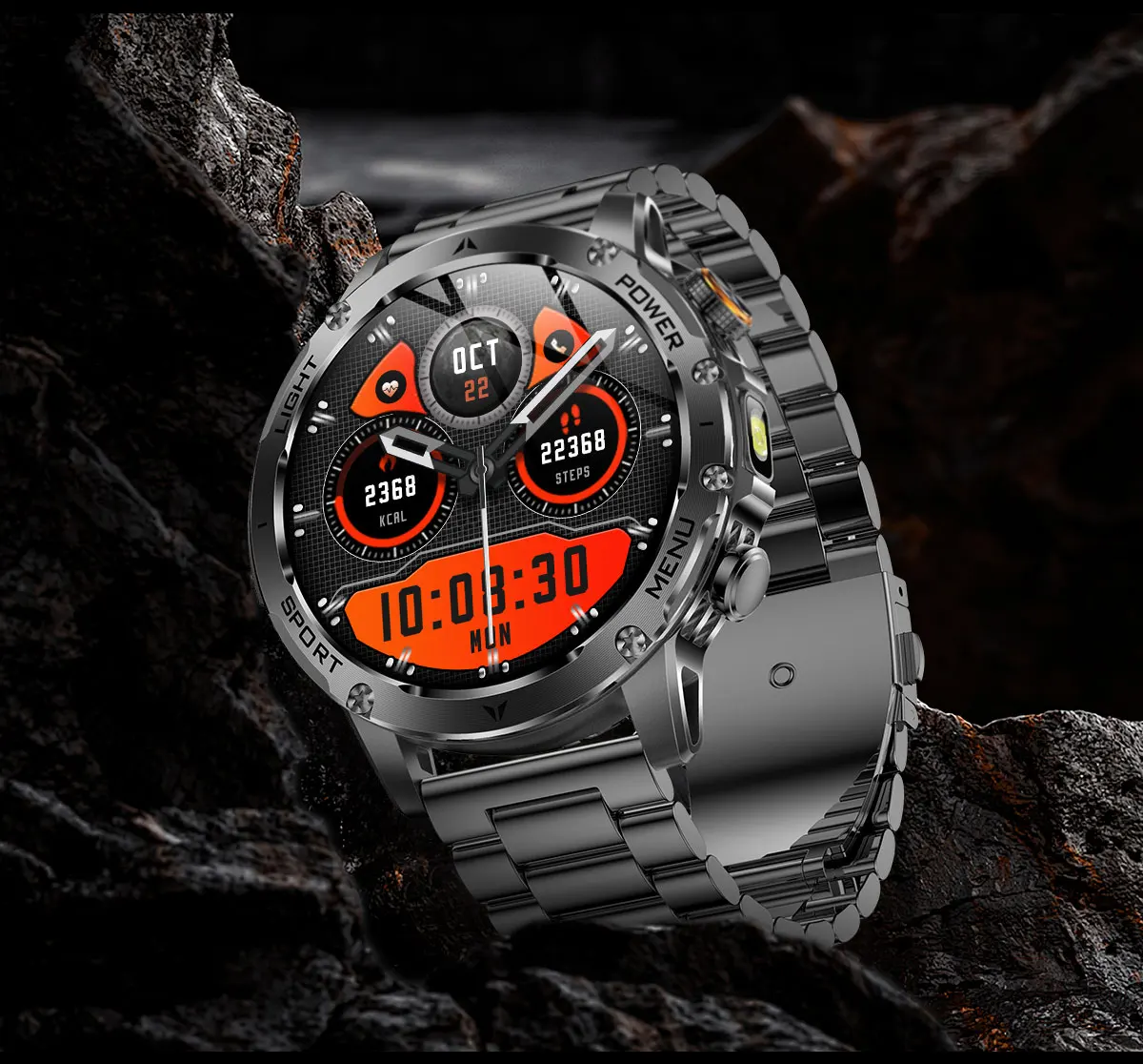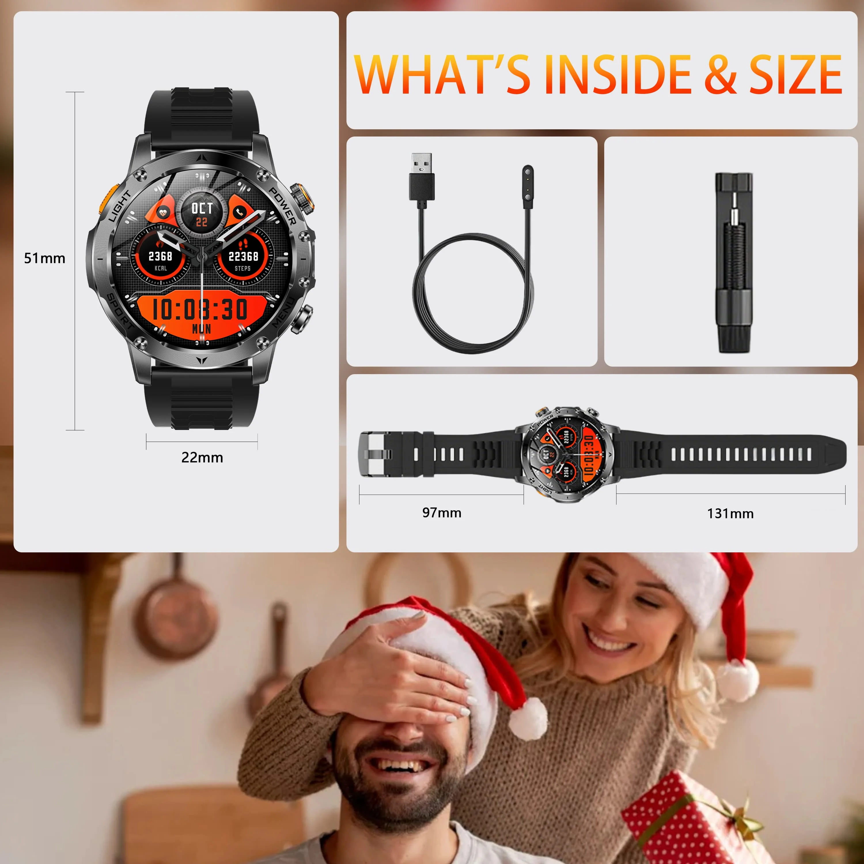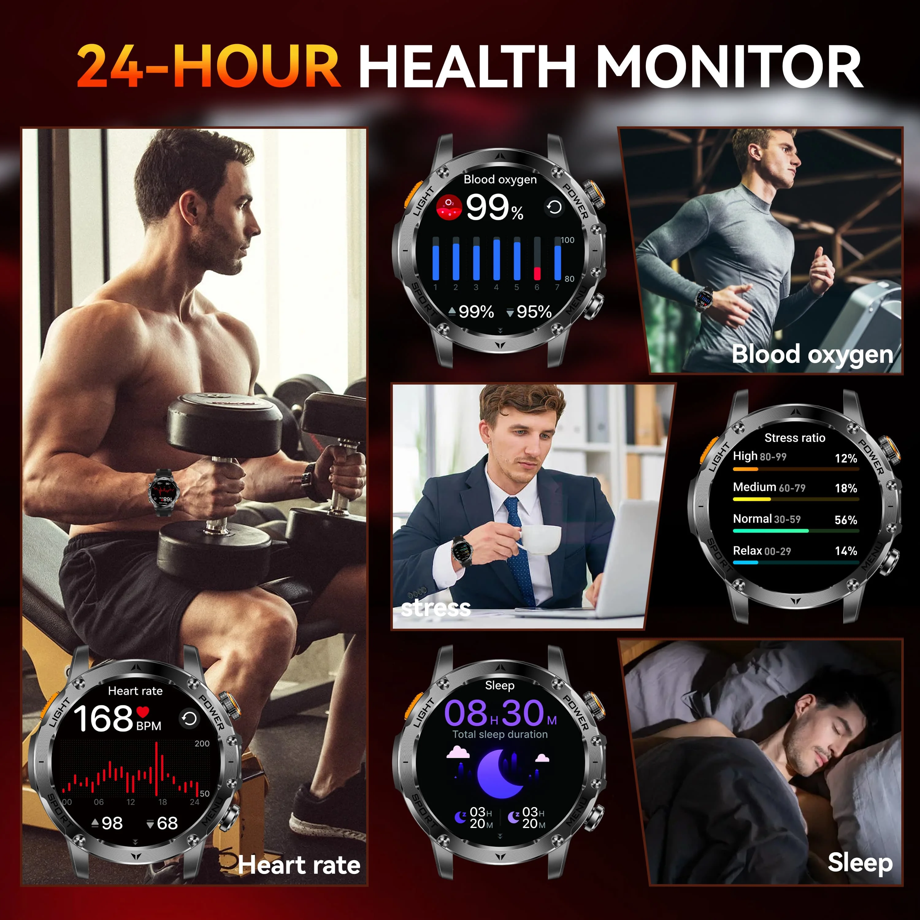KPEP Military Smart Watch 1000mAh Large Battery LED Flashlight Health Monitor Wireless Call 100+ Sports Modes Smartwatch for Men