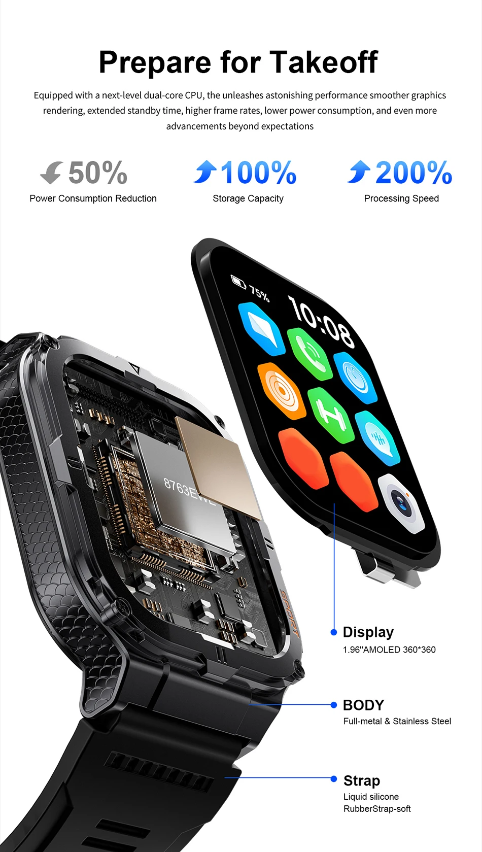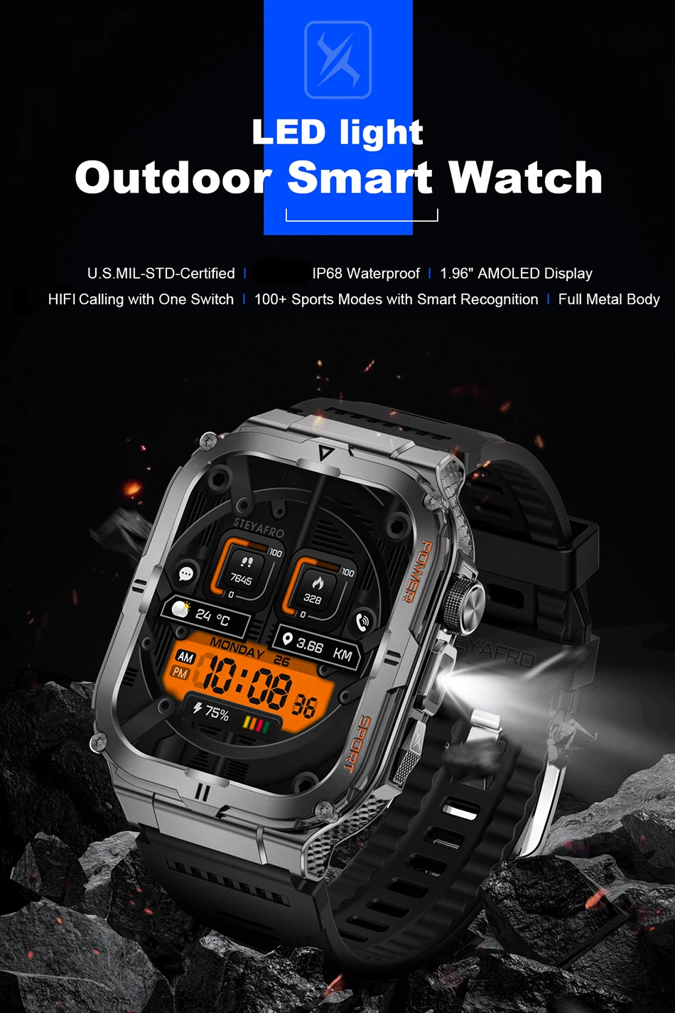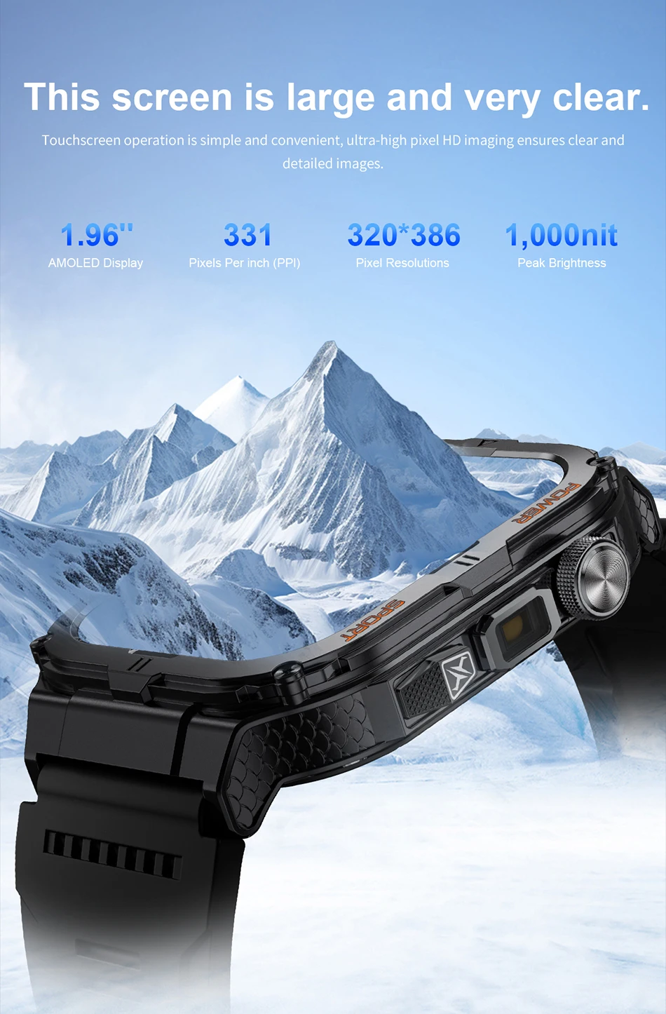Experience crystal-clear visuals with the 1.96" HD AMOLED screen, perfect for health monitoring and sports tracking.