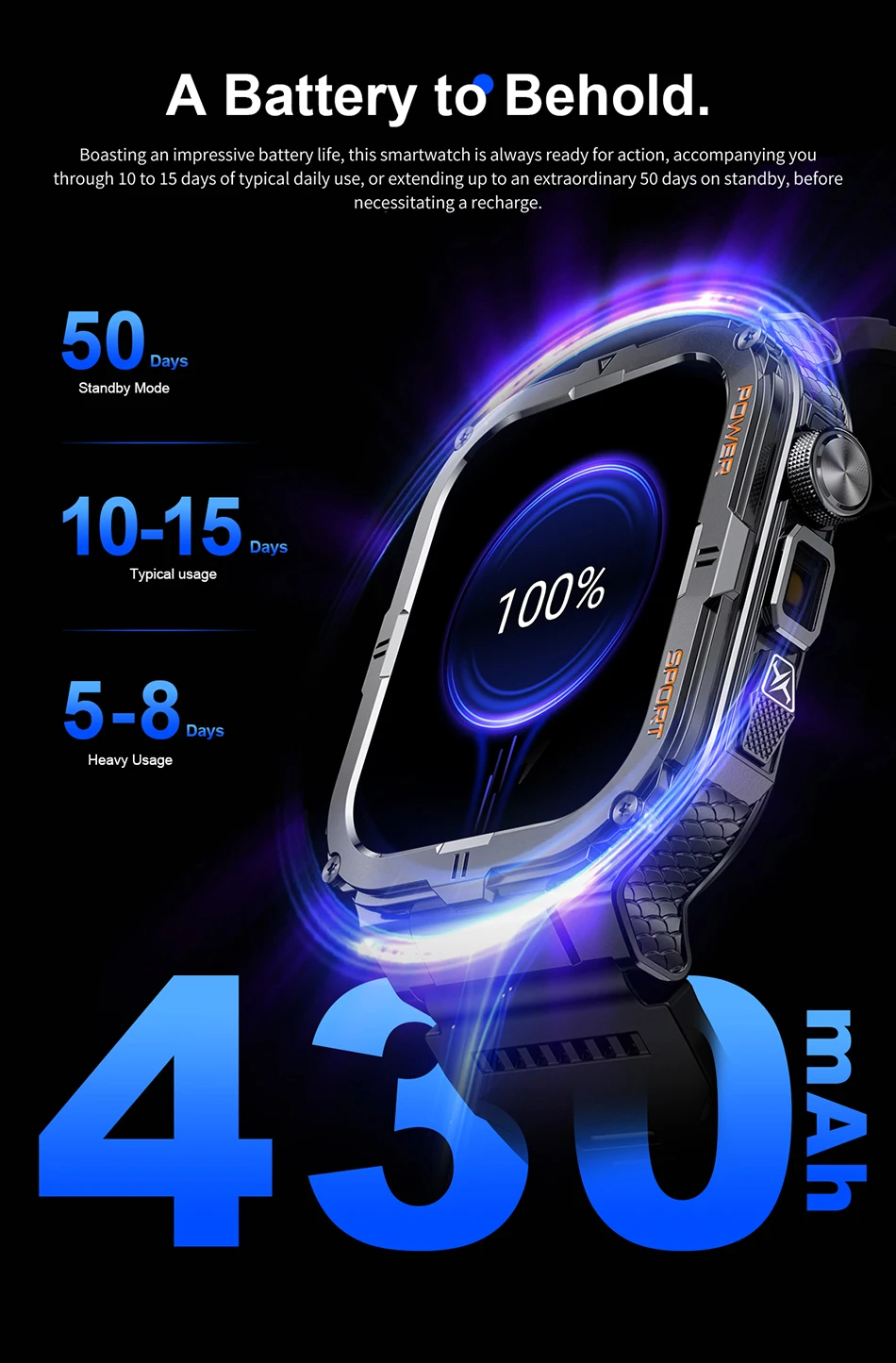 Stay connected longer with a robust 430mAh battery, ensuring uninterrupted use throughout your day.