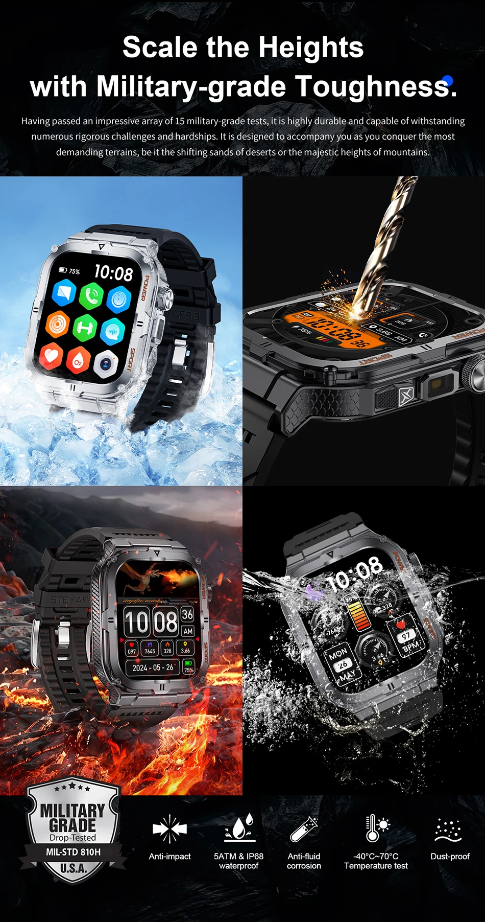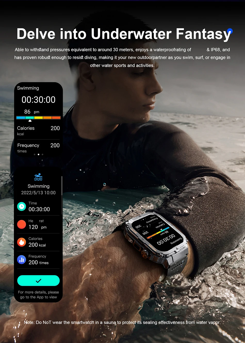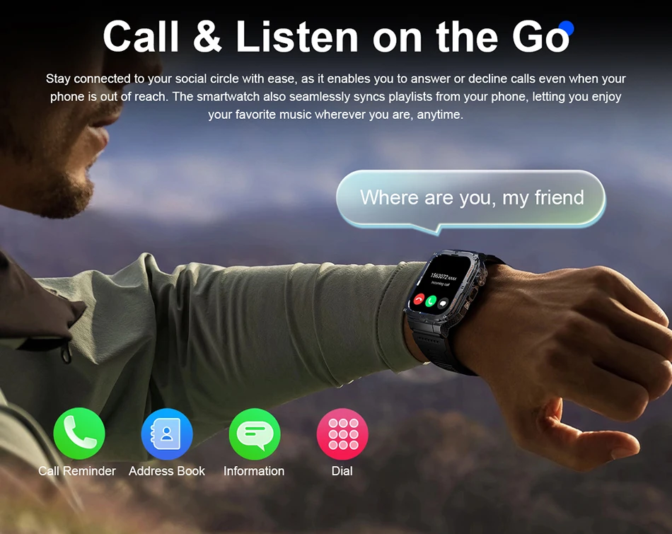 Dive into adventures with confidence; this smartwatch is designed to withstand splashes and rain, ideal for outdoor activities.