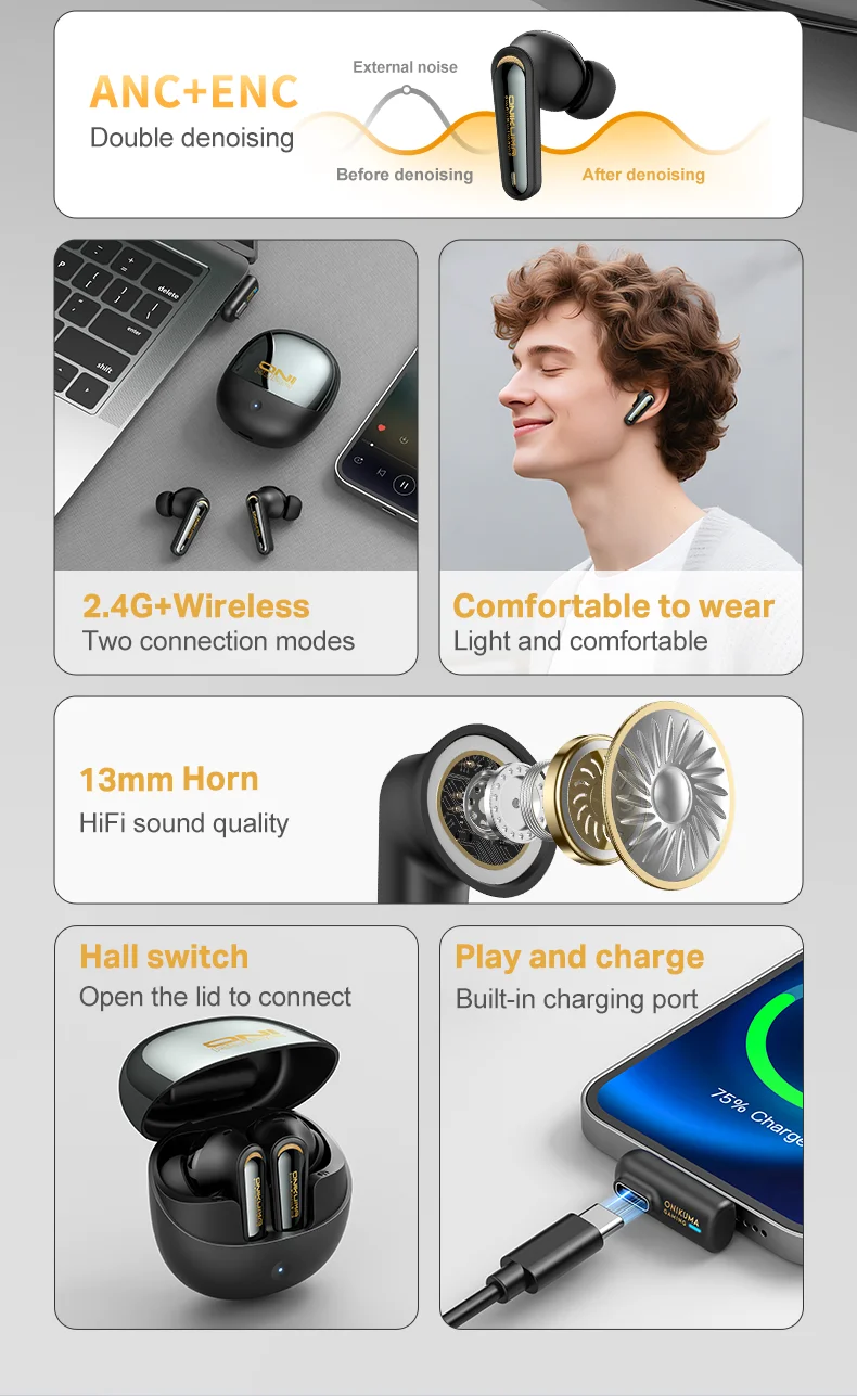 ONIKUMA NEW TX610 dual-mode gaming headphones with high-definition call sound quality and low latency for gaming