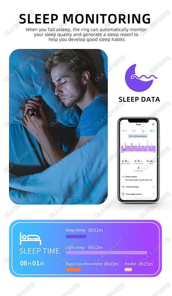 Sleep: accurate sleep algorithm, sleep data analysis (deep sleep, light sleep, eye movement data analysis)