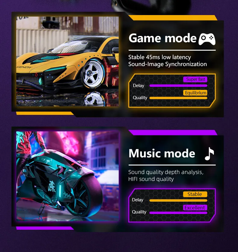 4. Game mode Stable 45ms low latencySound-lmage Synchronization.