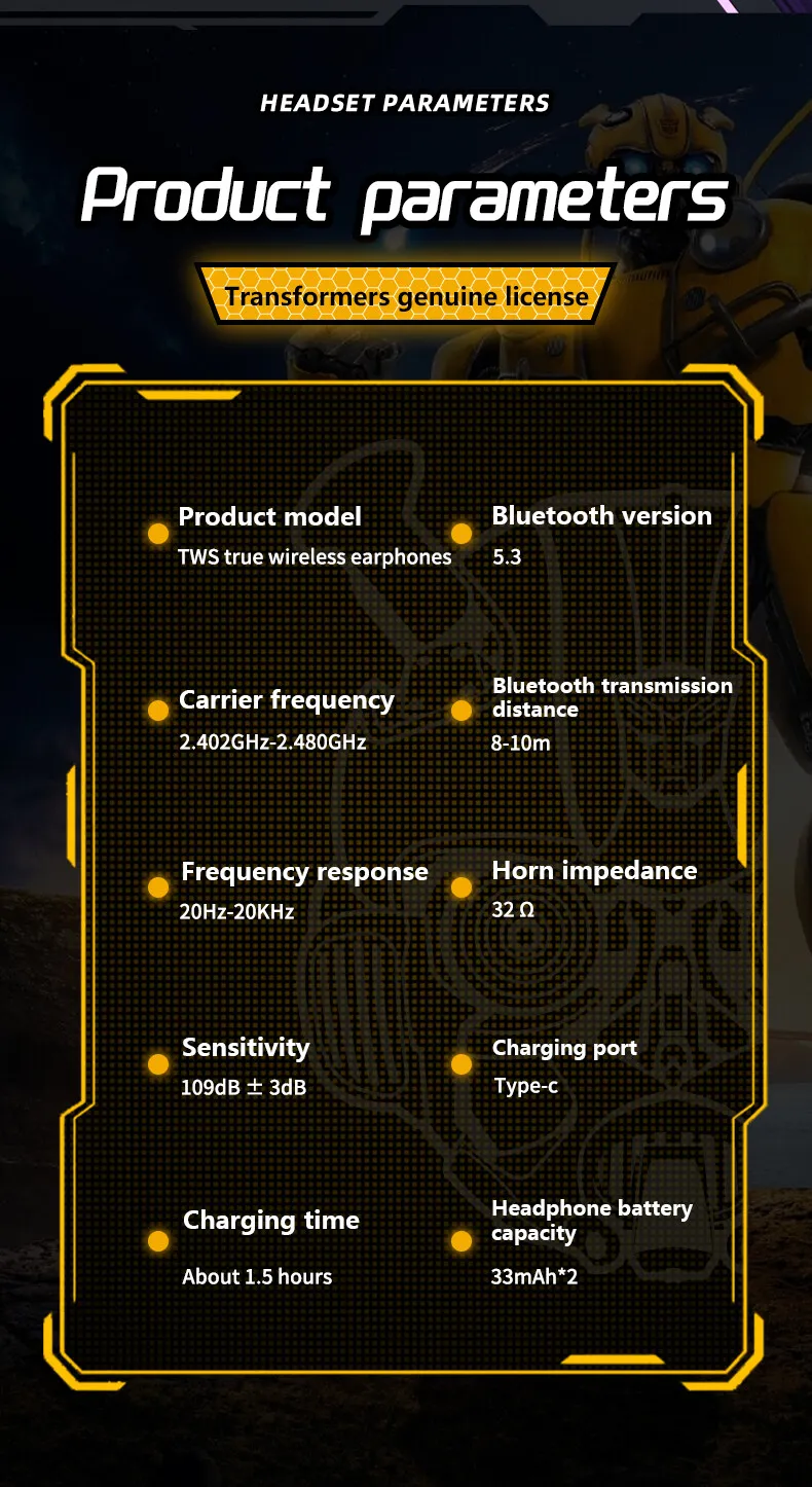 Transformers TF-T01 Gaming Headset TWS Wireless Headphone Nosie Reduction Bluetooth 5.3 Earphones Cool Sport Earbuds With Mic